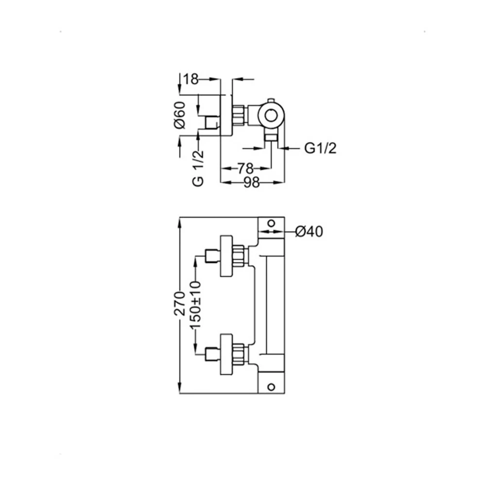 Μπαταρία ντούζ θερμοστατική OTTONE MELODA THERMOSTATICS 57205 Χρωμέ