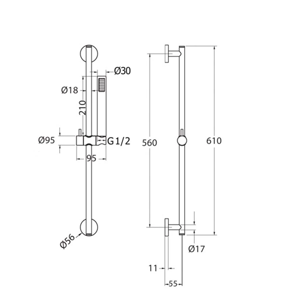 Σετ βέργα ντουζ OTTONE MELODA ROUND 15302 Χρωμέ