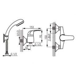 - G½ απόσταση έκκεντρης σύνδεσης 150 ± 20mm